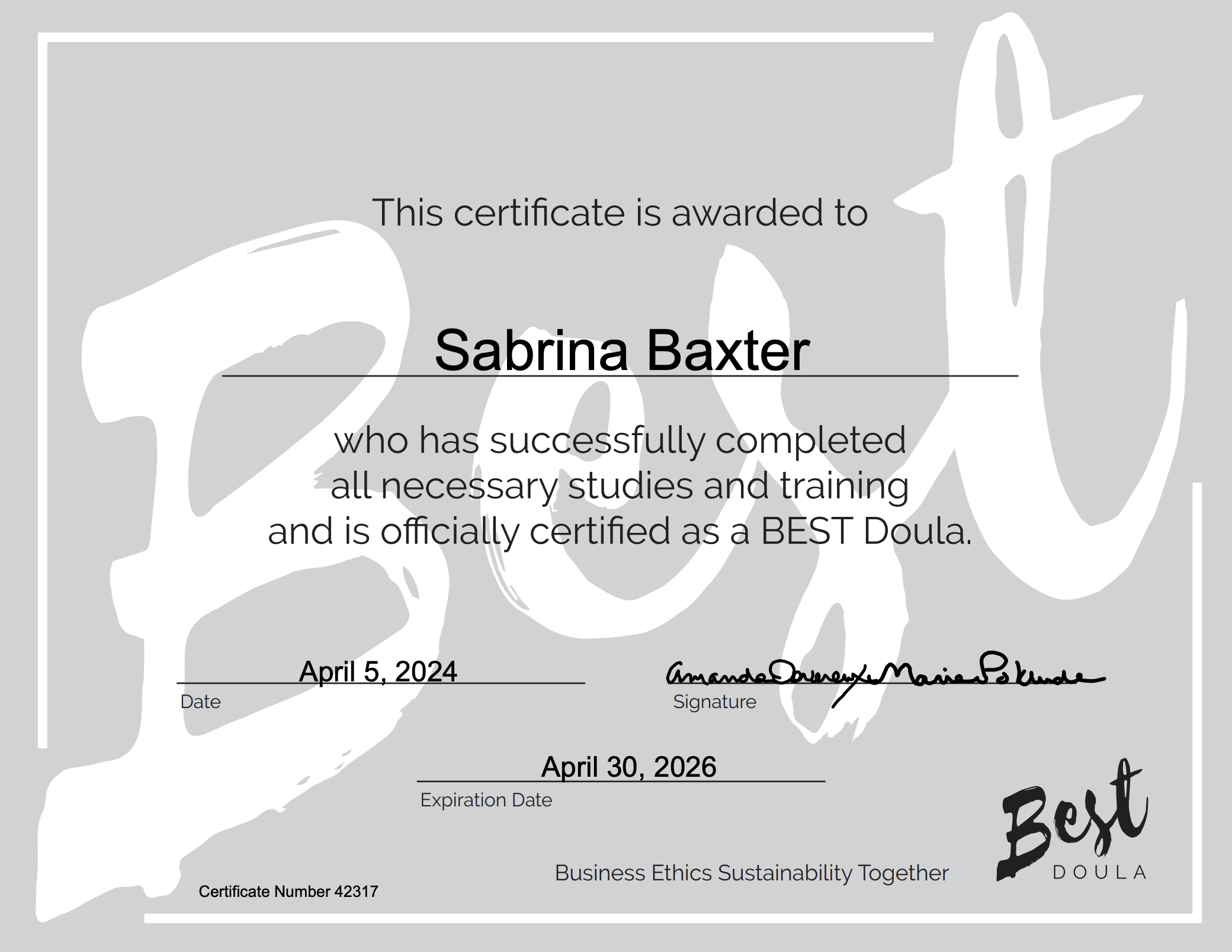“I thought, who better to support me during labor to guide me with childbirth than Sabrina. I felt an immediate sense of calm and support with her there”. - Amy G.
